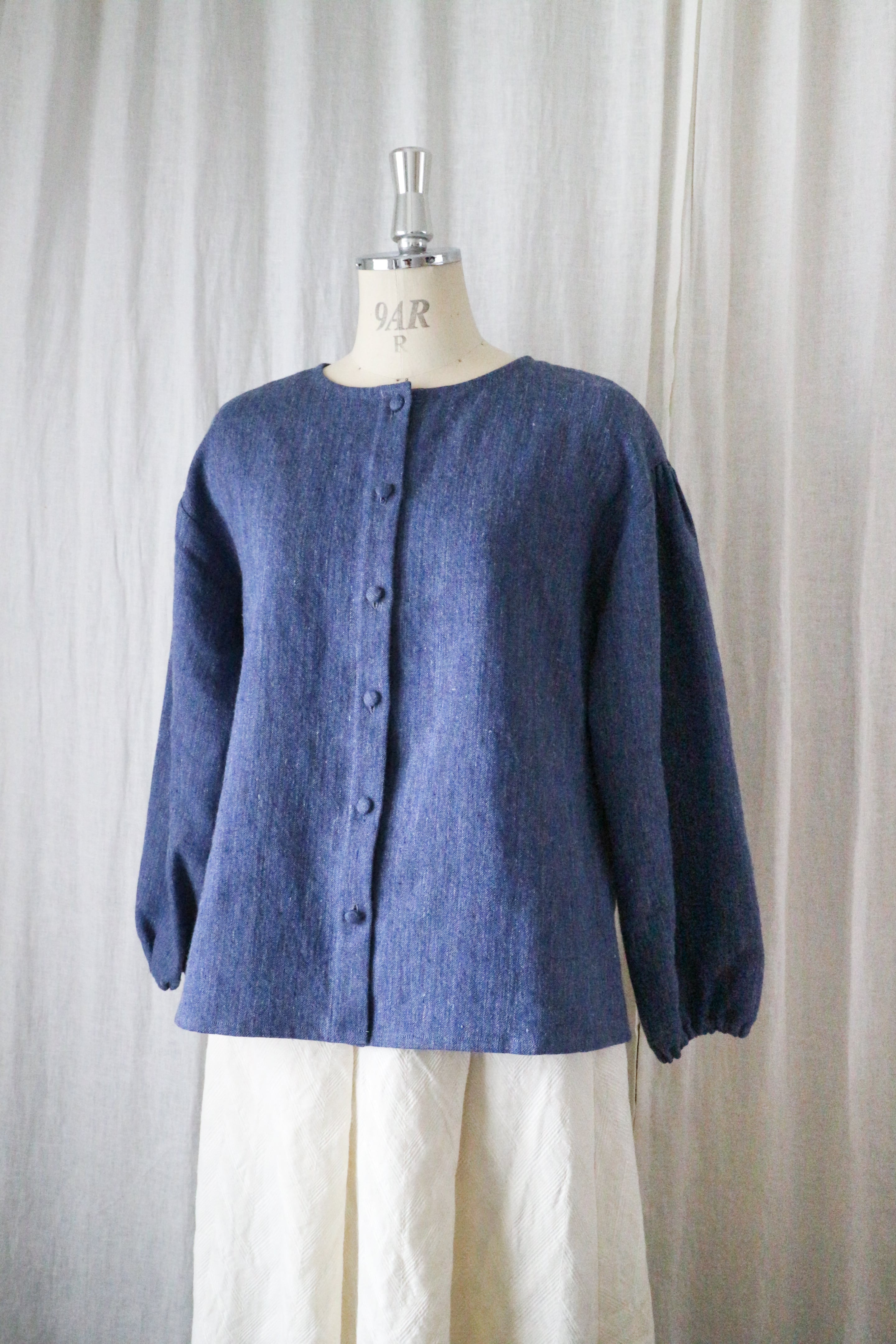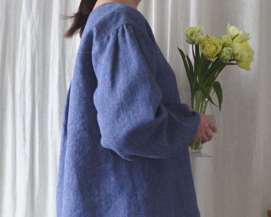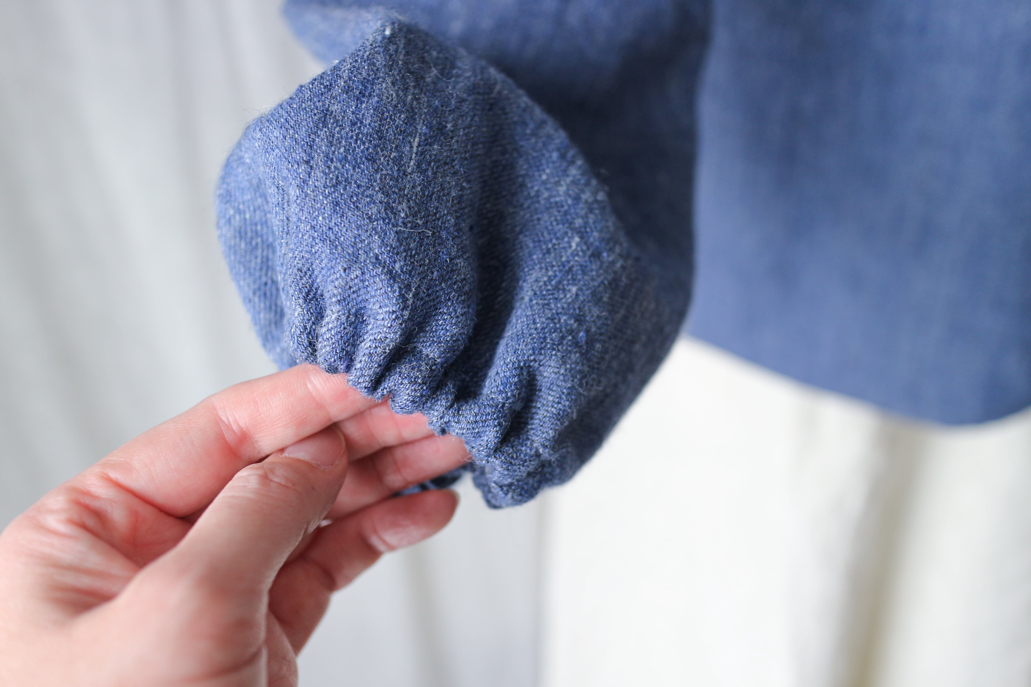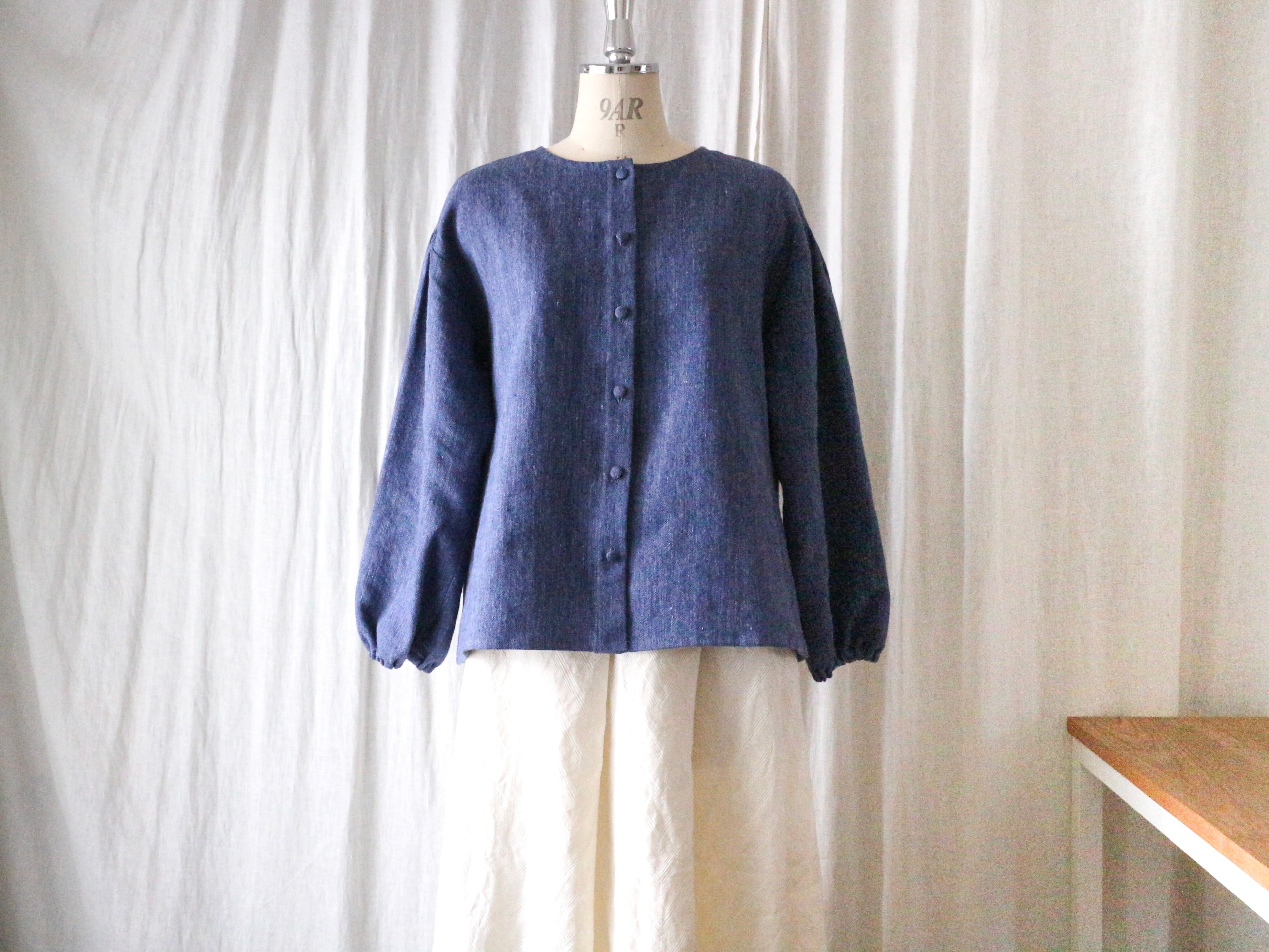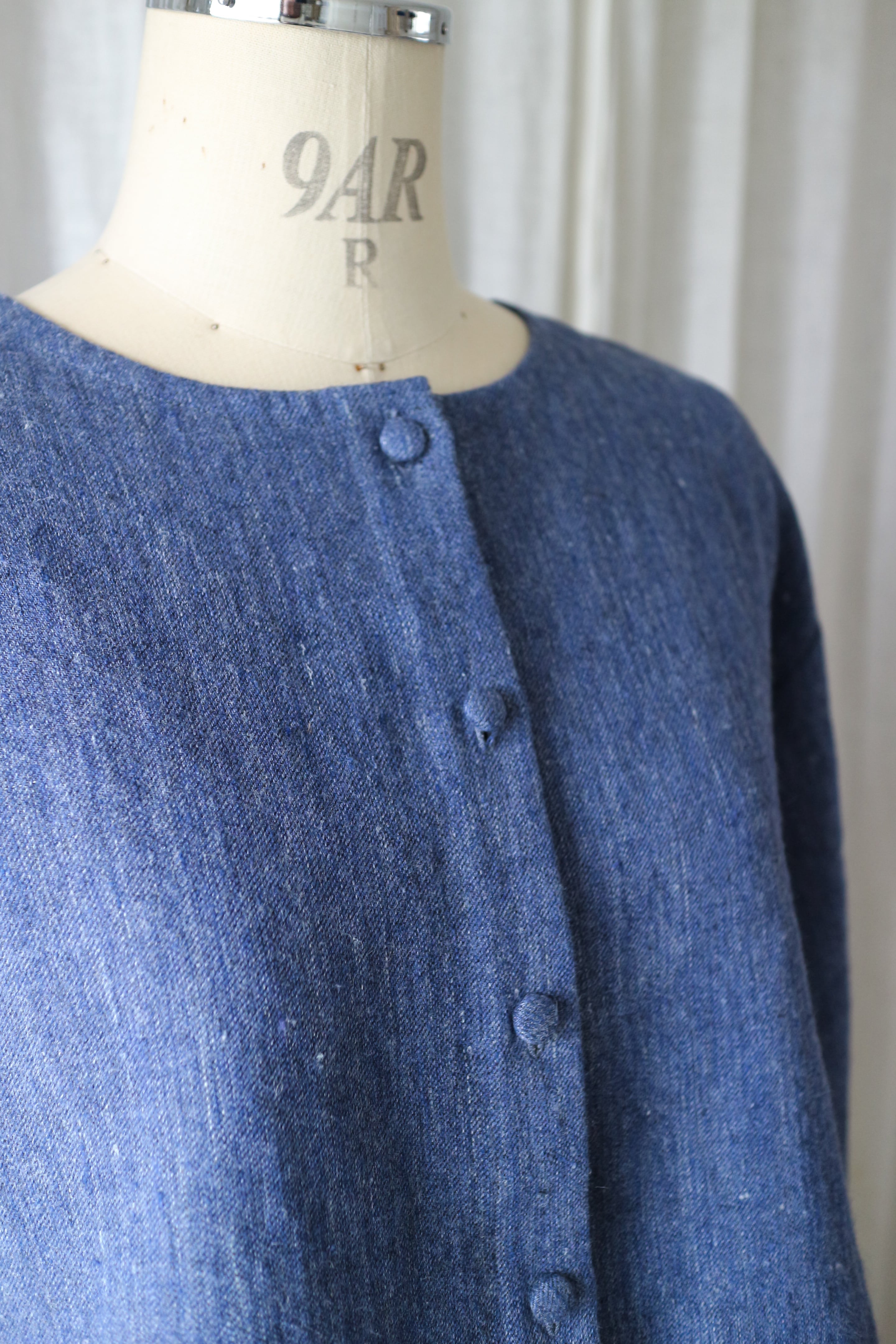羽織りになるブラウス デニムライクなリネンウール リネン70%、ウール30%
