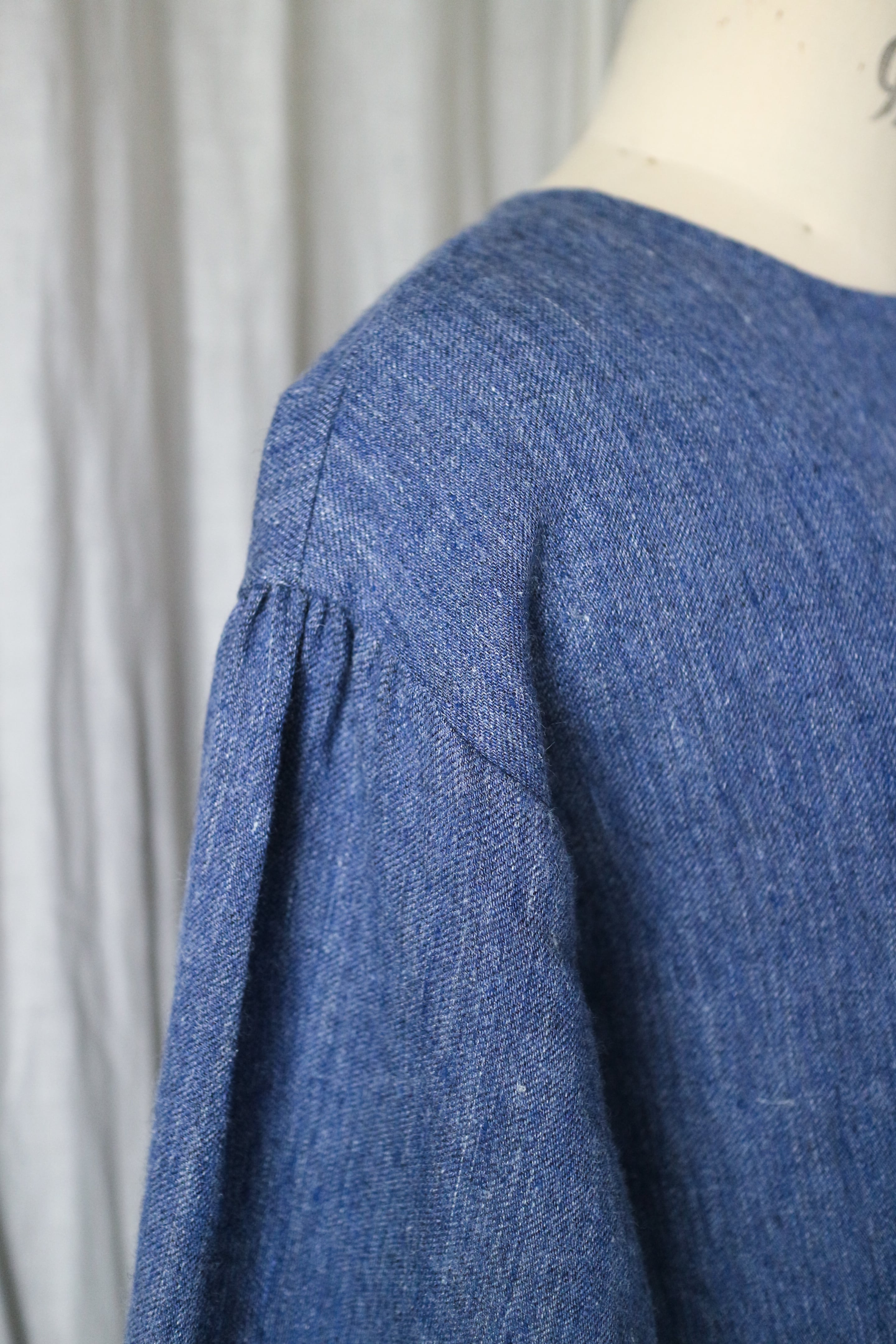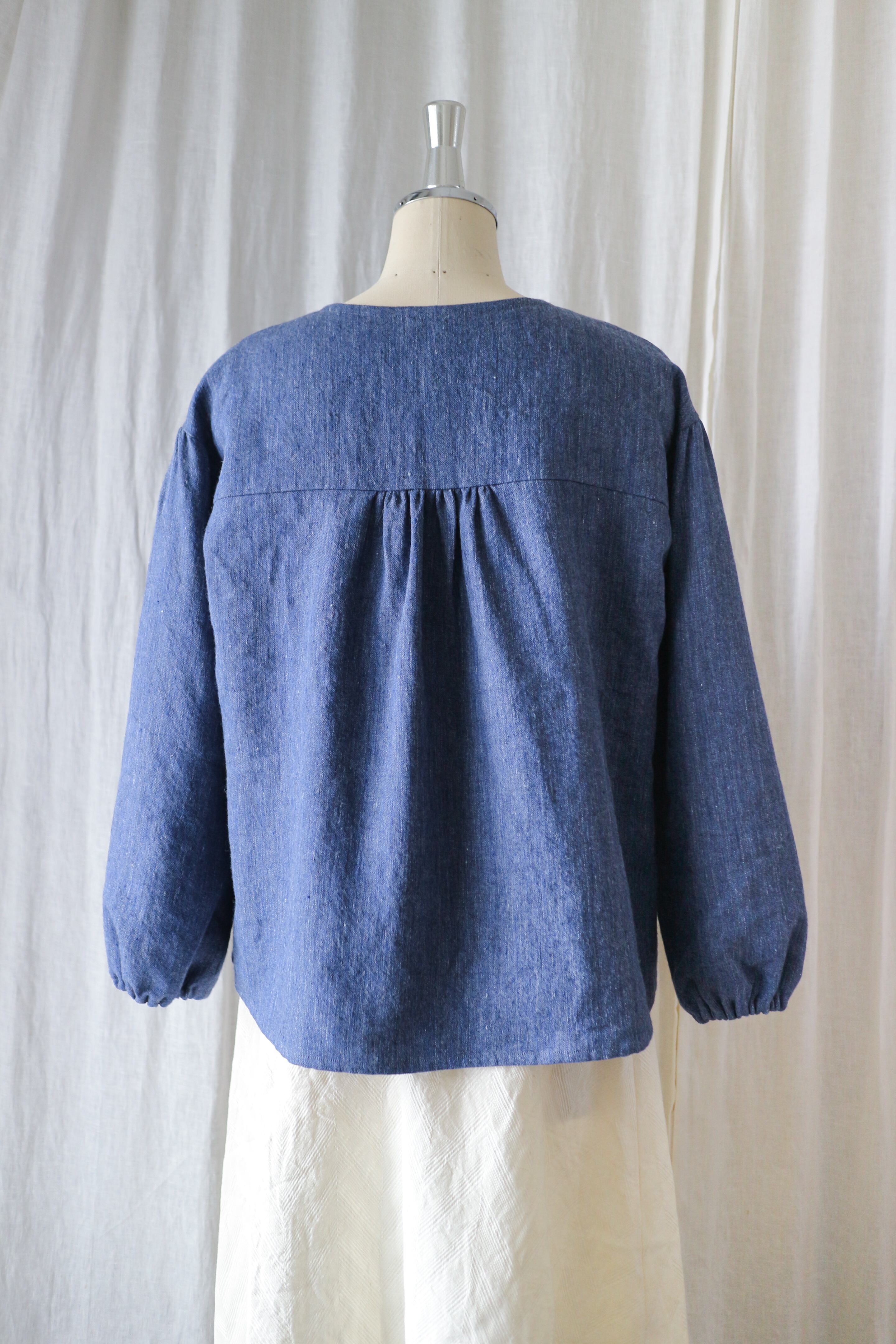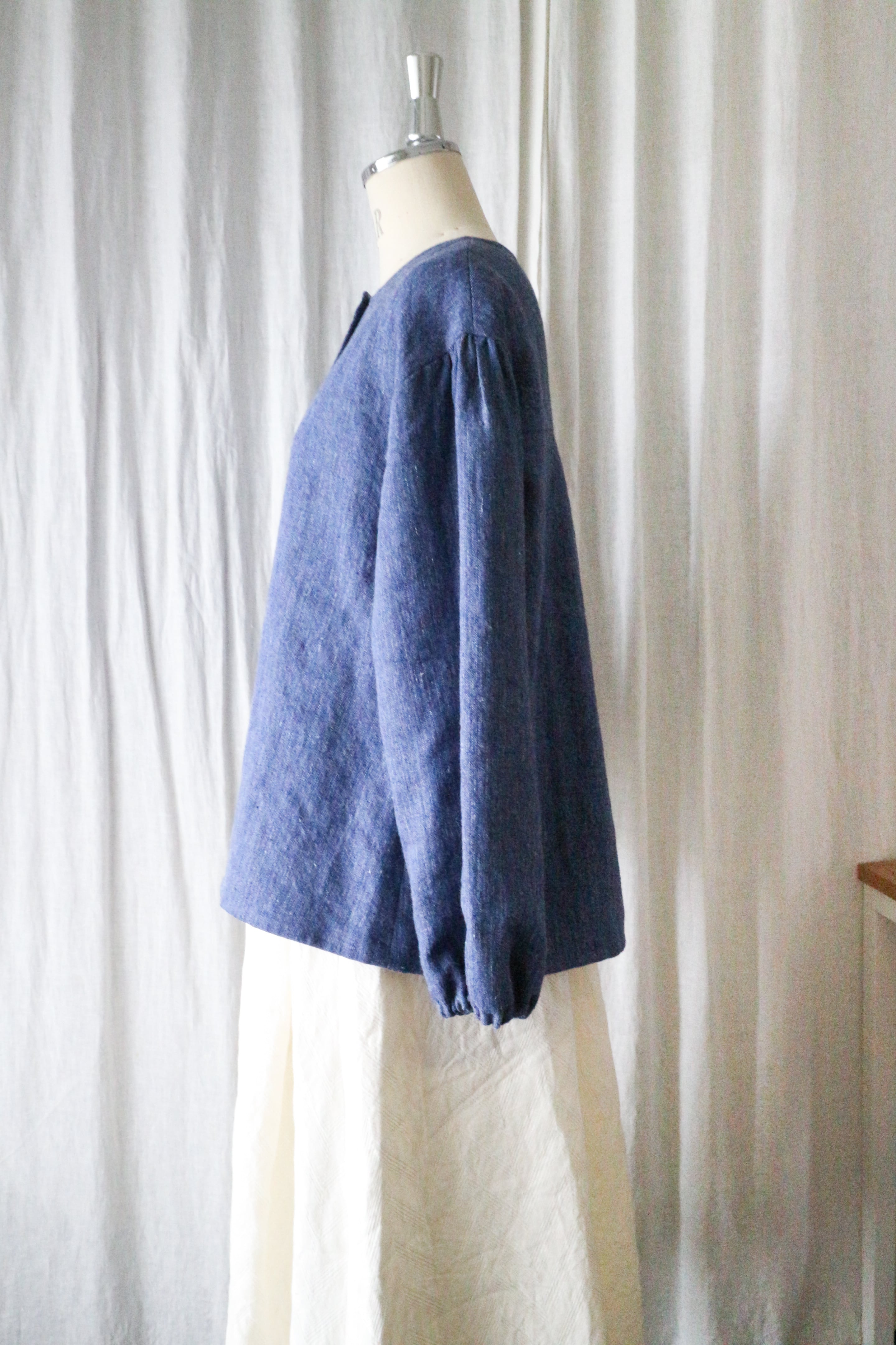 羽織りになるブラウス デニムライクなリネンウール リネン70%、ウール30%
