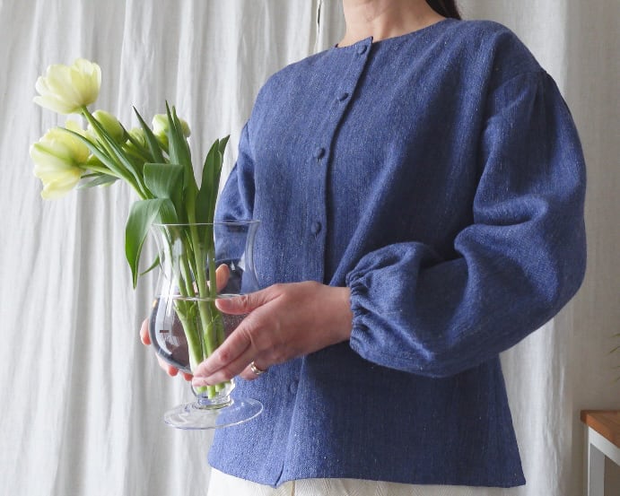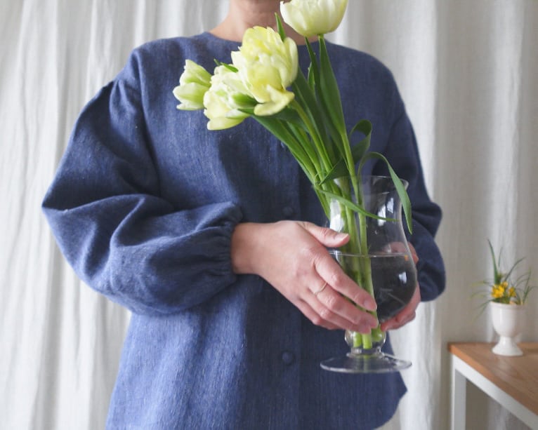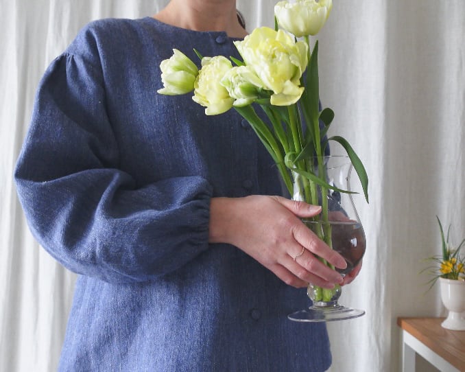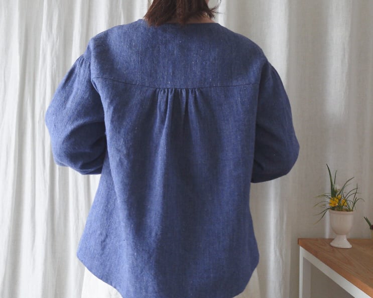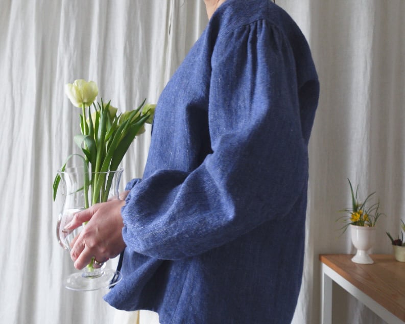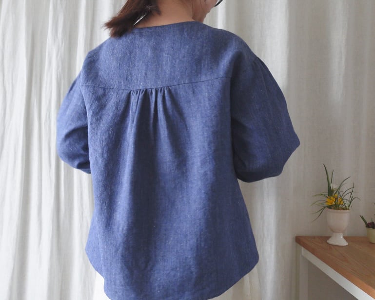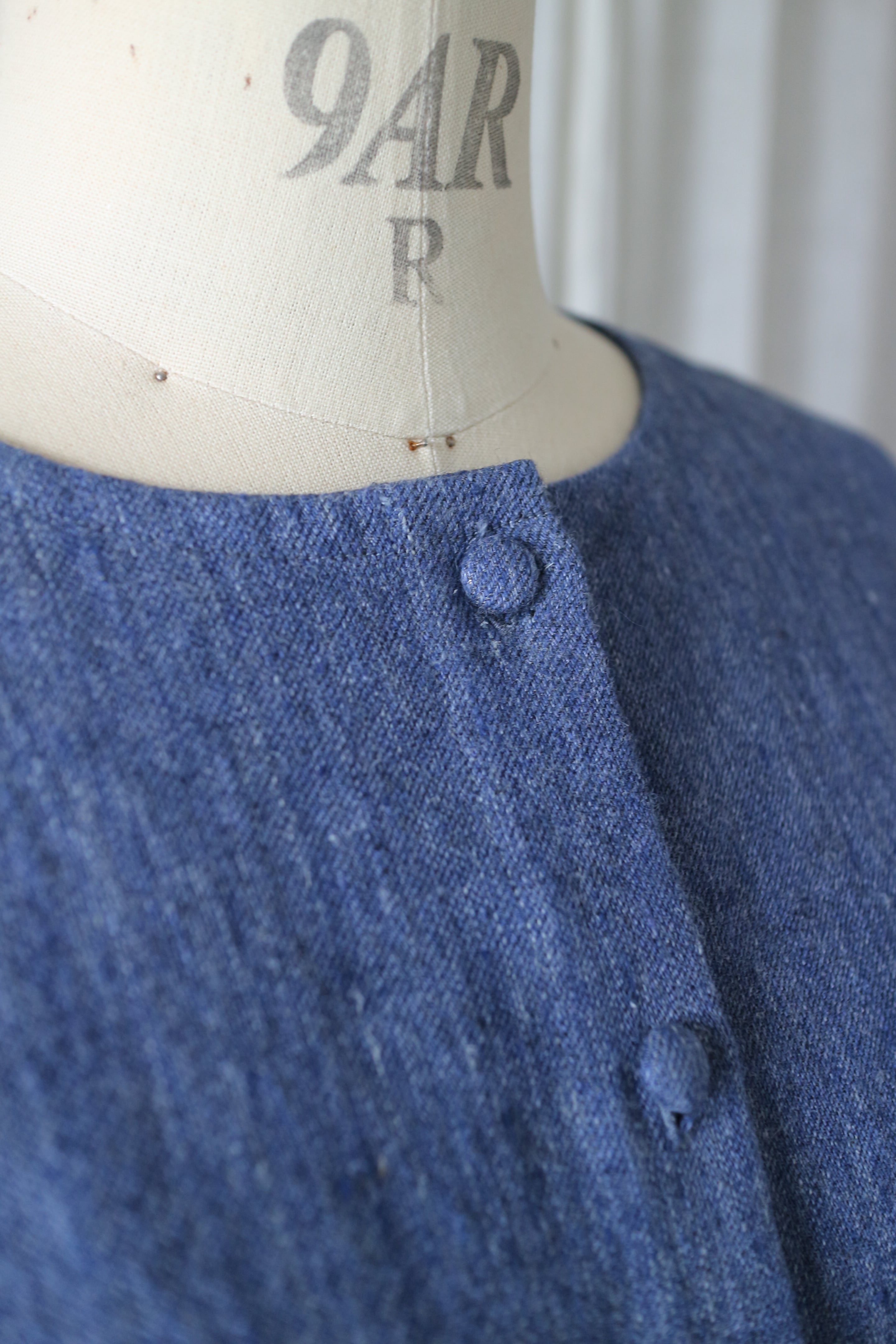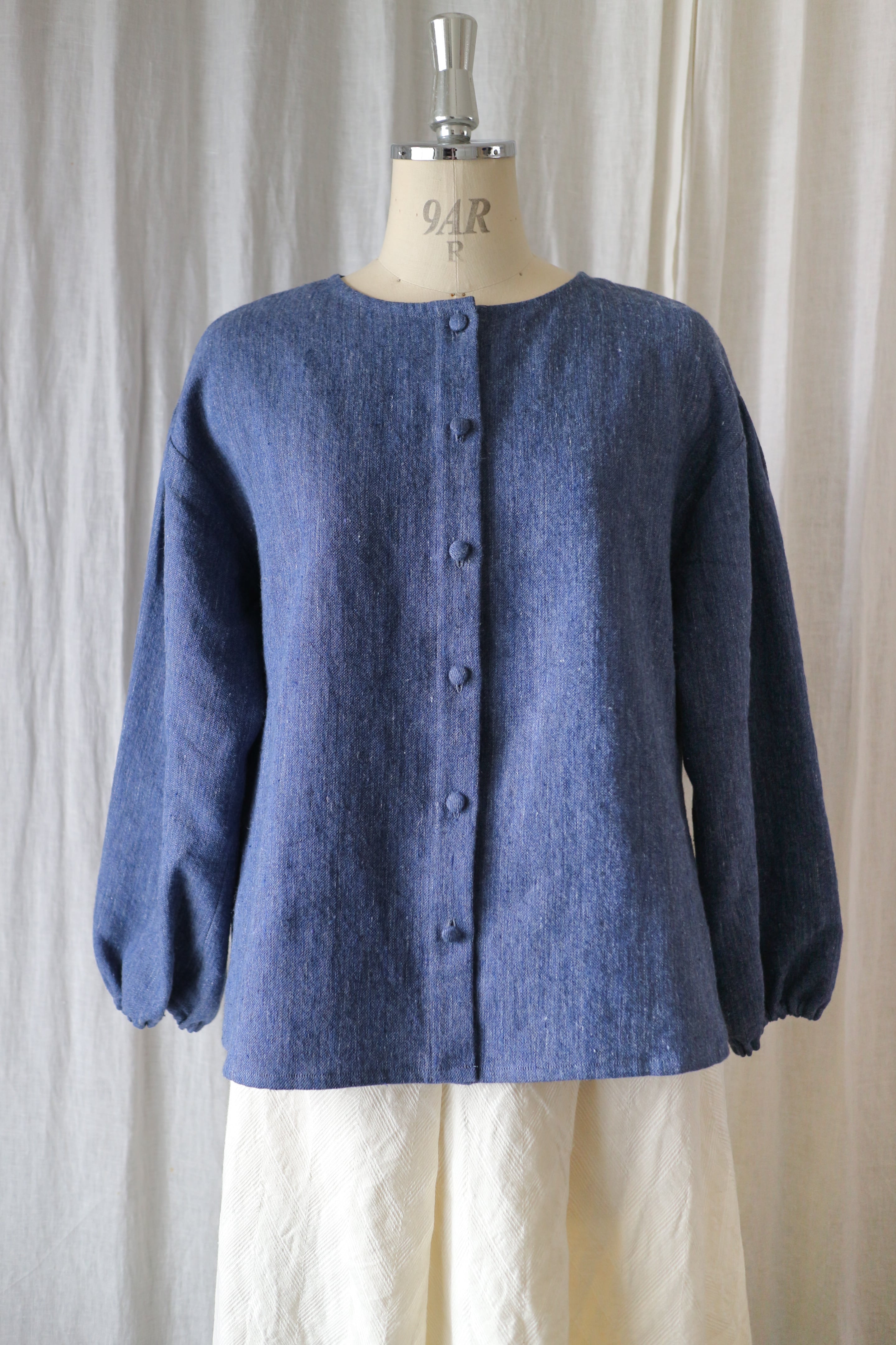 羽織りになるブラウス デニムライクなリネンウール リネン70%、ウール30%