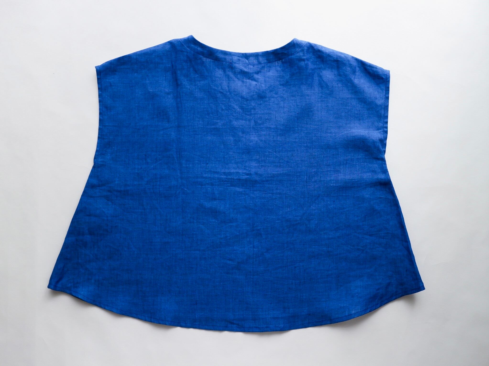 サラリと心地よい リネン100% フレンチスリーブフレアーブラウス(ロイヤルブルー)